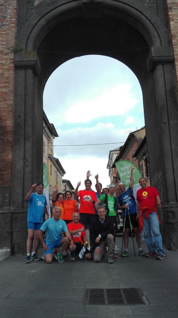 La sesta tappa dell’eco-maratona Keep Clean And Run#pulisciecorri è partita ieri mattina da Montelibretti per arrivare a Campagnano di Roma nel tardo pomeriggio. Una tappa, quella di ieri, tutta dedicata alle scuole per educare i più piccoli al rispetto verso l’ambiente e perchè siano loro stessi a ricordare agli adulti distratti di salvaguardare il Pianeta che lasciano loro in eredità. Dopo la calorosa accoglienza della sera precedente, i bambini delle scuole di Montelibretti e l’assessore all’ambiente Emiliano Petrucci hanno voluto dedicare un ultimo saluto a Roberto Cavallo e Oliviero Alotto in partenza verso Campagnano. Presente all’incontro anche Barbara Degani, sottosegretaria al Ministero dell’Ambiente e della Tutela del Territorio e del Mare, che ha dichiarato: “il Ministero è orgoglioso di sostenere questa iniziativa per la sua capacità di lanciare un messaggio alle giovani generazioni“. Lungo il percorso per Campagnano i due runner hanno fatto tappa intorno alle 12:30 a Riano per incontrare i bambini della scuola materna che avevano preparato per loro dei cartelloni di benvenuto realizzati con materiali di recupero. Sempre accolti dalle scuole i corridori si sono fermati per una seconda sosta nel primo pomeriggio a Castelnuovo di Porto. Qui un nutrito gruppo di cittadini, alcuni a piedi altri in bicicletta, si è unito alla corsa che ha imboccato la Via Francigena per proseguire senza interruzione verso Campagnano, dove nel frattempo era in corso un’azione di pulizia della città ad opera di associazioni e scuole del territorio. Soddisfatti invece per i pochi i rifiuti incontrati lungo il cammino, runner e ciclisti hanno fatto il loro ingresso tutti insieme a Campagnano alle 18:00 circa. Ad attenderli e presentarli alla cittadinanza i rappresentanti delle istituzioni cittadine e Lucia Cuffaro, già testimonial dell’edizione 2015 di Keep Clean And Run. Un infortunio al tendine d’achille ha costretto Roberto Cavallo, sostenuto e accompagnato dal suo compagno di corsa Oliviero Alotto ad anticipare la partenza da Campagnano per l’ultima tappa di KeepCleanAnd Run alle 3 del mattino. Stanchi ma determinati, i corridori percorreranno gli ultimi chilometri della maratona in direzione di Roma con arrivo previsto in Piazza San Pietro alle 13:30 dove hanno dato appuntamento a sindaci, assessori, sponsor, giornalisti e associazioni incontrati lungo il cammino e a chiunque voglia partecipare per proseguire insieme fino alla sede della FAO (Food and Agricoltural Organization), Circo Massimo.