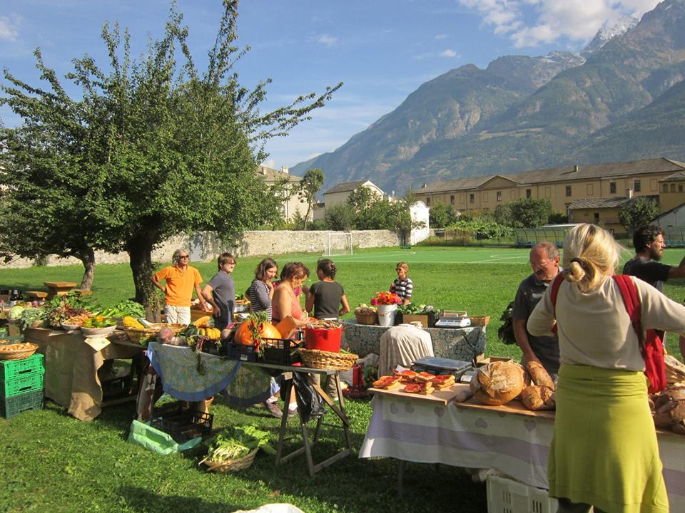 Inoltre, un piccolo ma significativo esempio “dal basso”, per il loro metodo di lavorare la terra nel rispetto della natura, è arrivato dal Collettivo Agricolo “LA TERRA CHE RIDE”. Si tratta di un gruppo di contadini Valdostani, che si è posto l’obiettivo di promuovere e valorizzare un modo nuovo di coltivare, per produrre frutti bio e a km0, OGM e chimica free, che propongono al mercato contadino, o durante incontri come il baratto e l’aperitivo condiviso.