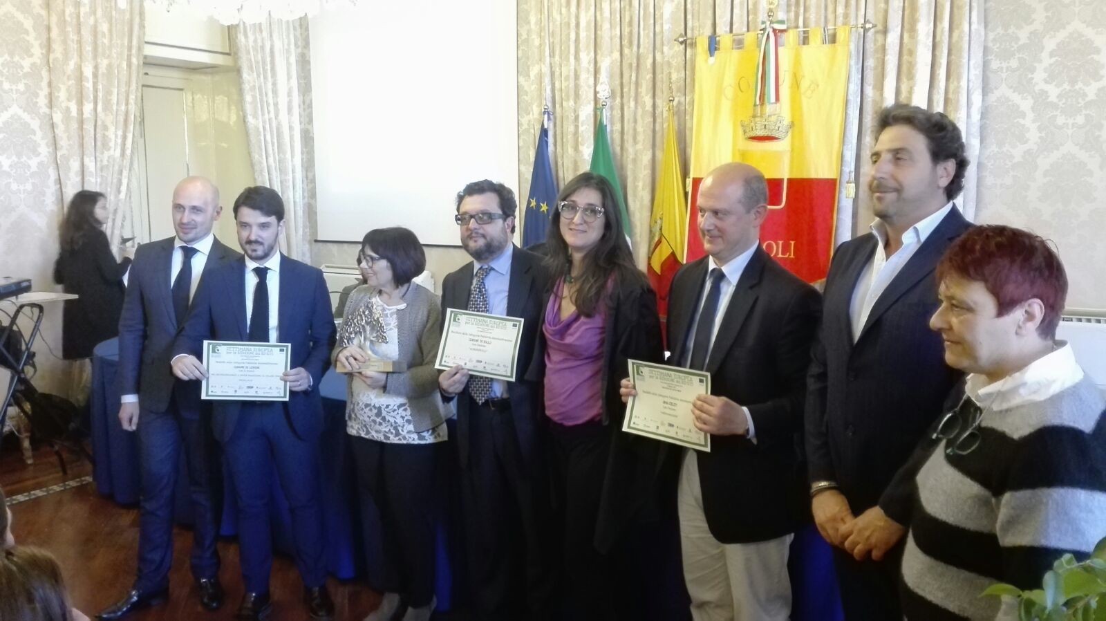 Grande la partecipazione e l’interesse per la cerimonia, che ha avuto luogo presso la Sala Giunta del palazzo comunale di Napoli, grazie al supporto del Ministero dell’Ambiente, degli sponsor della SERR – CONAI e Consorzi di Filiera (Corepla, Comieco, Coreve, Cial, Rilegno, Ricrea), e del Comitato Promotore (UNESCO, AICA, Utilitalia, Anci, Legambiente, Città Metropolitana di Roma e Città Metropolitana di Torino). Le premiazioni delle migliori azioni SERR 2016 sono state l’occasione per proporre ai finalisti e agli altri ospiti un evento articolato che raggruppava diversi attori e protagonisti impegnati nella riduzione dell’imbatto ambientale degli imballaggi.